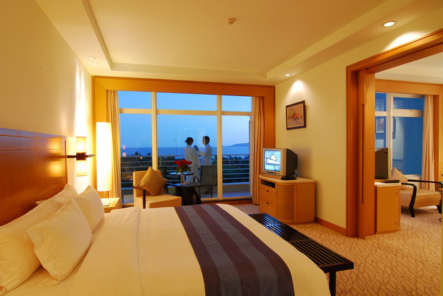 高級海景房,面積42平方米,樓層3-4層,有陽臺,180度海景,前面有遮擋物,大床(1.8*2米),雙床(1.2*2米),有浴缸,免費(fèi)寬帶