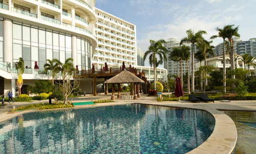 三亞龍悅海景大酒店是由北京鑫地集團投資興建,是一家集旅游度假、商務休閑于一體的高端復合型精品海景酒店。酒店位于中國海南島南端的三亞市三亞灣西岸,俯瞰壯麗的三亞灣海景和西島, 距三亞鳳凰國際機場10分鐘車程, 距離市區(qū)僅8分鐘車程;酒店建筑面積35000平方米,與著名的天涯海角、 南山佛教文化苑、 南山大小洞天、 西島和三亞國際高爾夫球場近在咫尺。酒店擁有各式海景房、海景套房共344間(套),均配有液晶電視、智能空調(diào)、頂級床上用品,配以超大觀景陽臺,可一覽海天之間的蔚藍深韻。